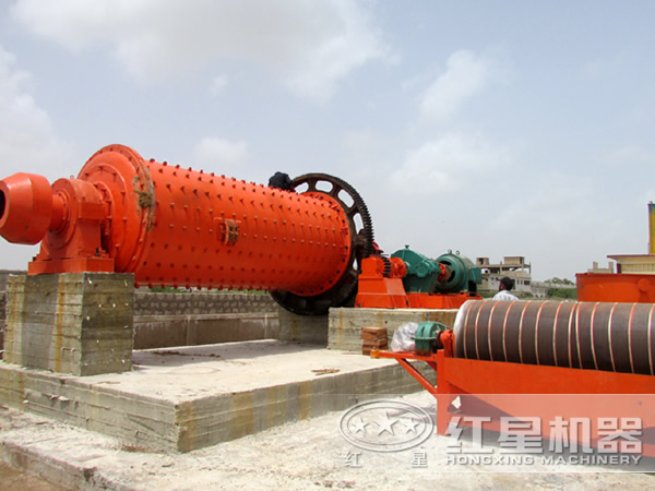 开采出来的方解石矿石现有鄂式破碎机进行初步破碎,破碎到合理粒度范围后的物料经由提升机均匀送到球磨机中,被球磨机对该物料进行粉碎和研磨。经球磨机研磨后的物料进入浮选机进行分级处理,分级处理过的物料因含水量较多,要经过浓缩机初步浓缩过程,才能在被烘干机烘干得到干燥的方解石成品。