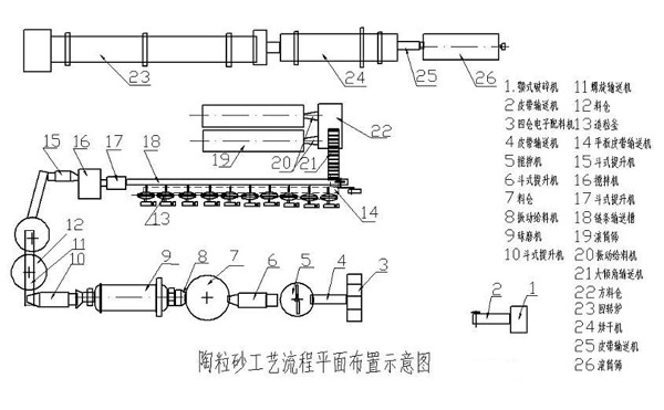 原料(粉煤灰 + 定量的外加剂)→混磨 →制粒 →烧胀 →堆放 →运输(装袋)